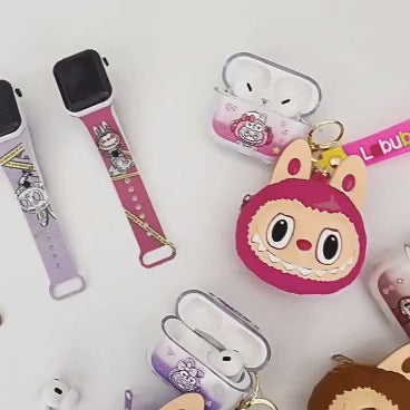 Includes: TWS earbuds with charging case, cartoon smartwatch, silicone keychain, rainbow tag strap, themed packaging